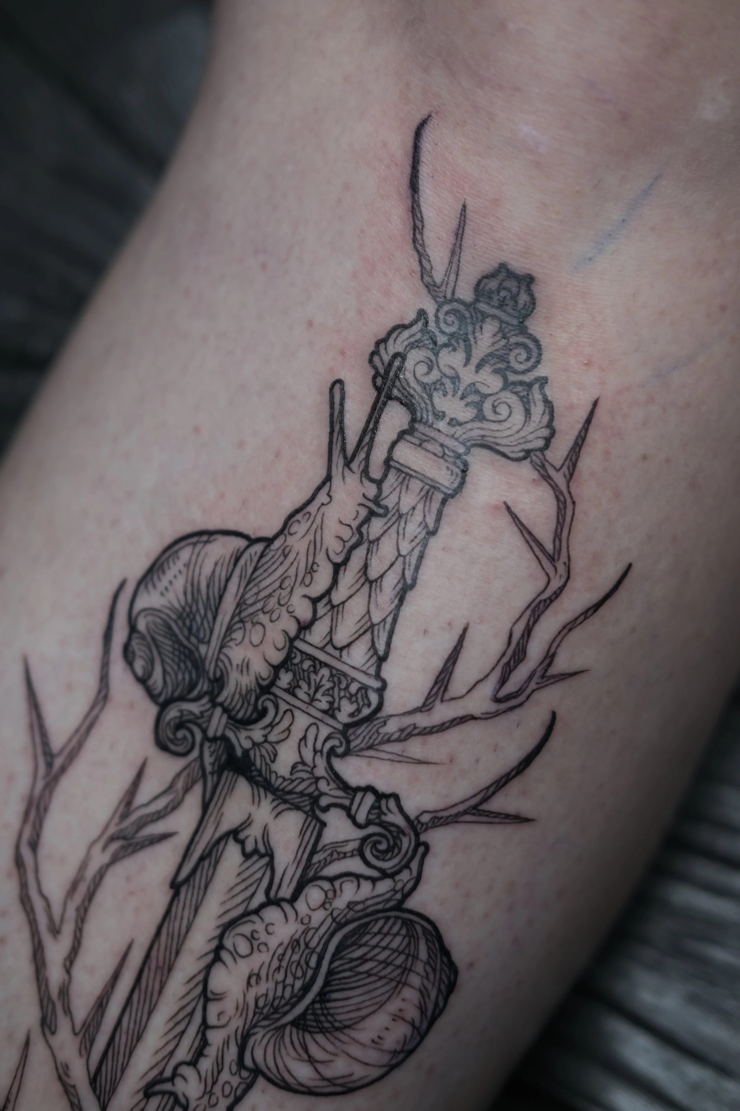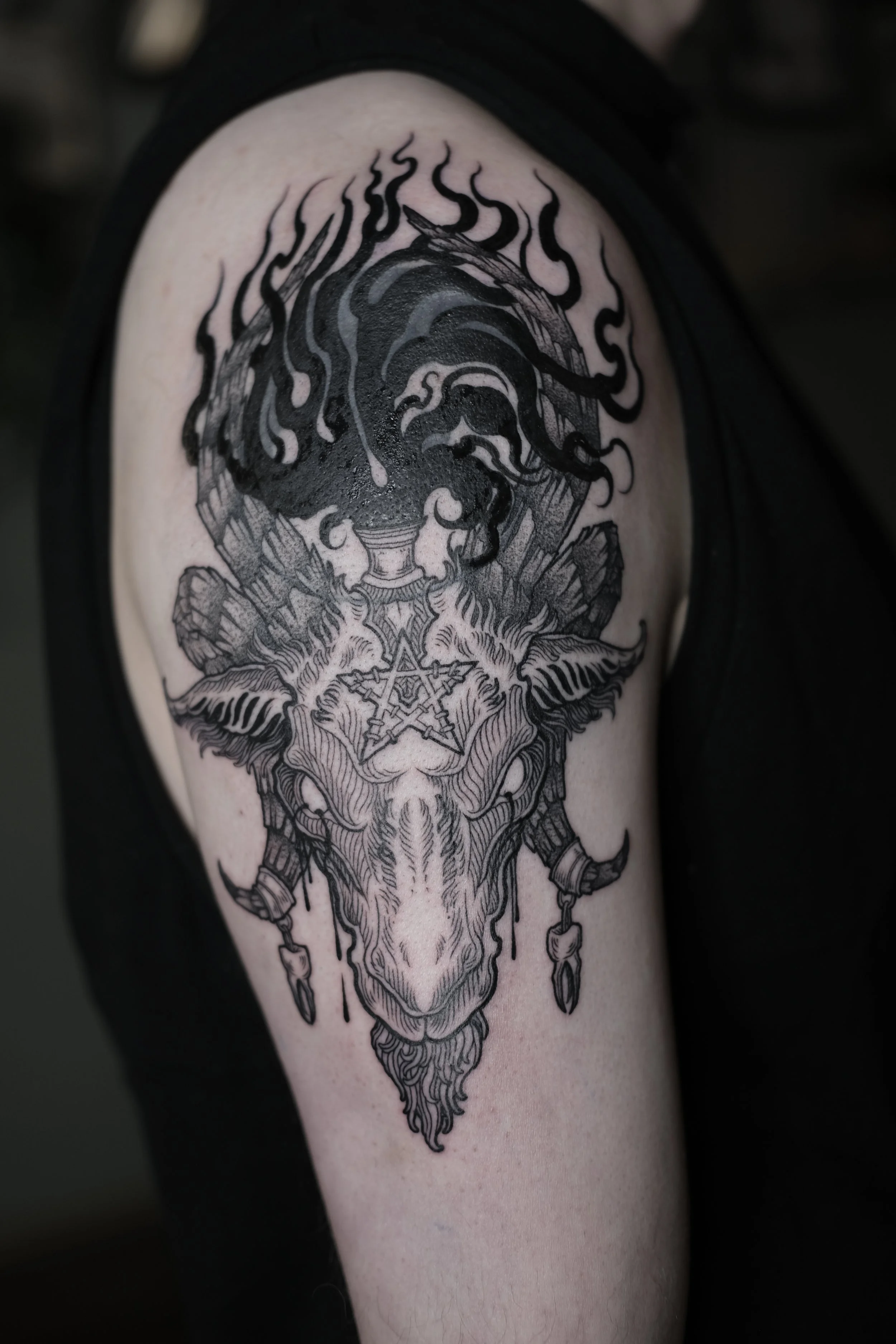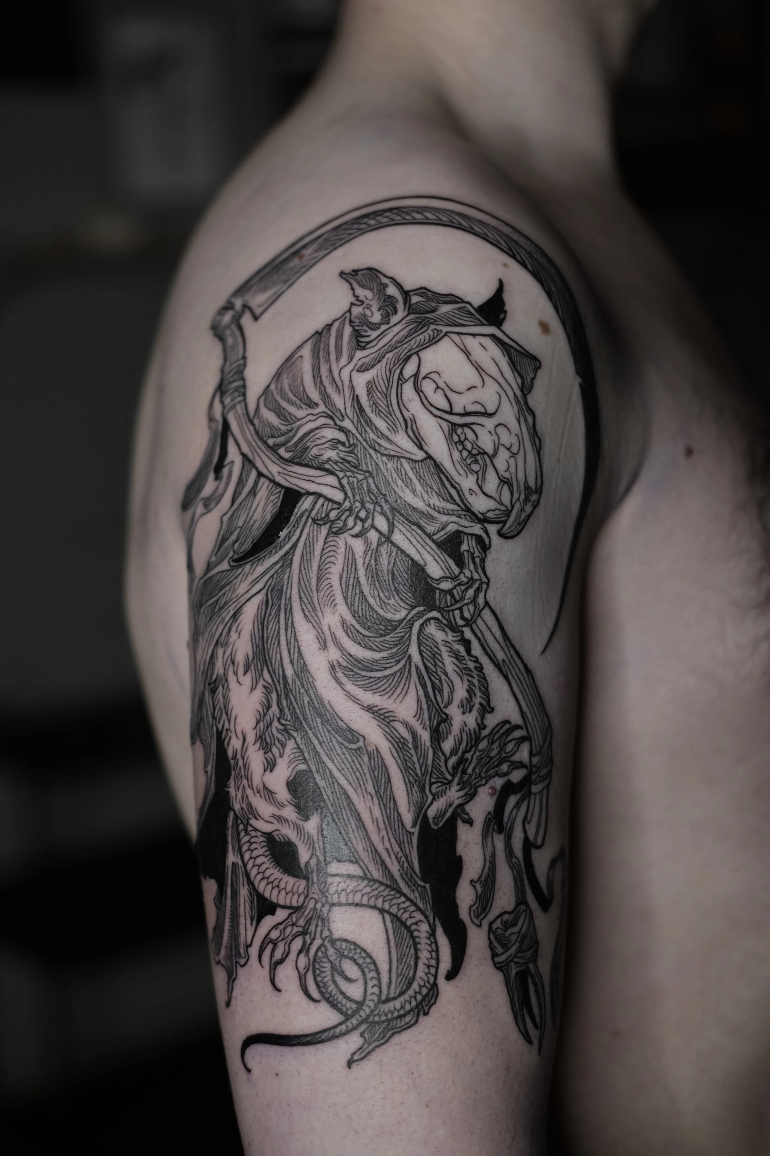 Ich bewege mich gern im Dark Art und engraving Stil, illustrativem Linework sowie Blackwork und kombiniere diese grafischen Darstellungsformen auch gerne miteinander.