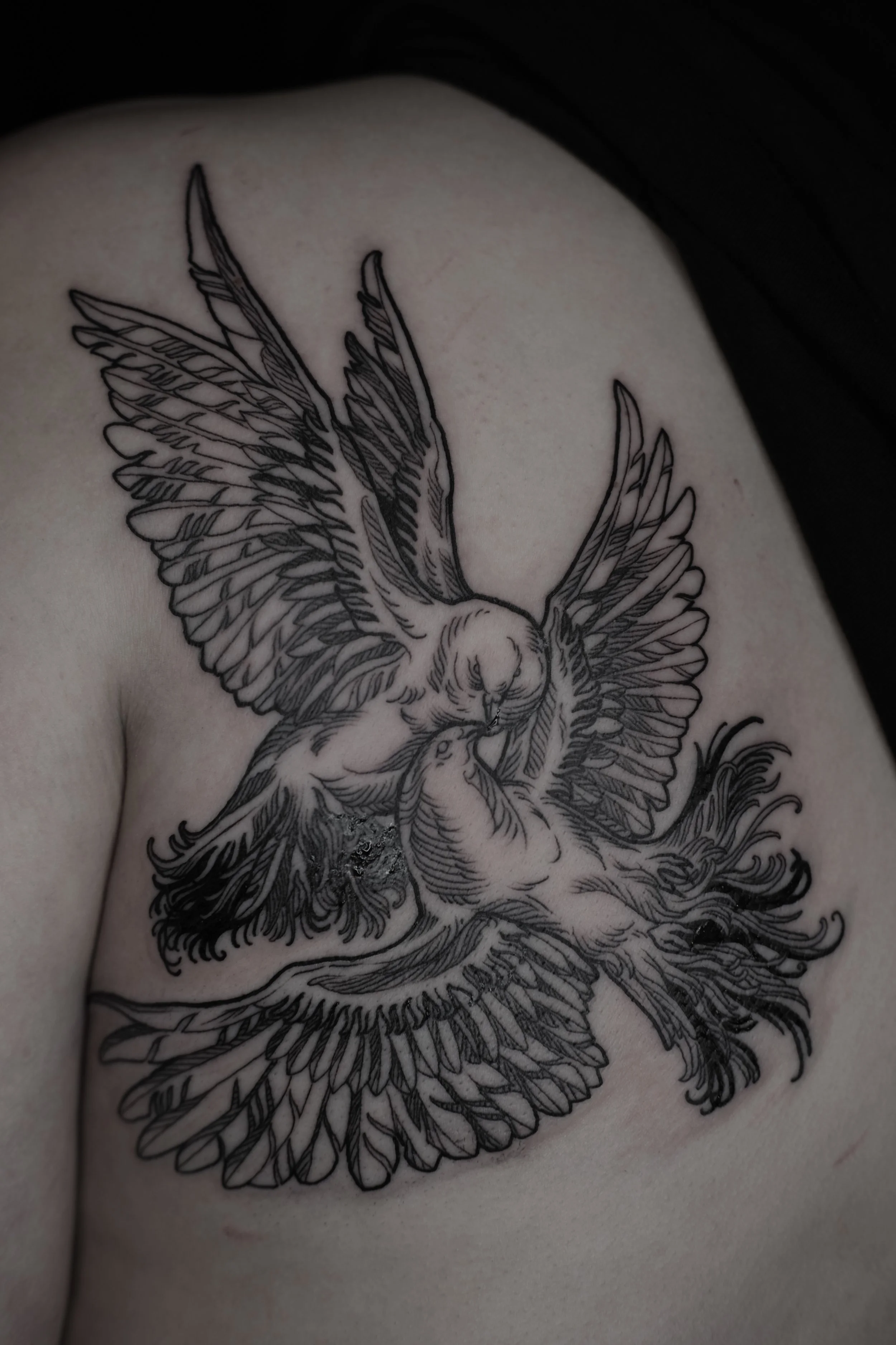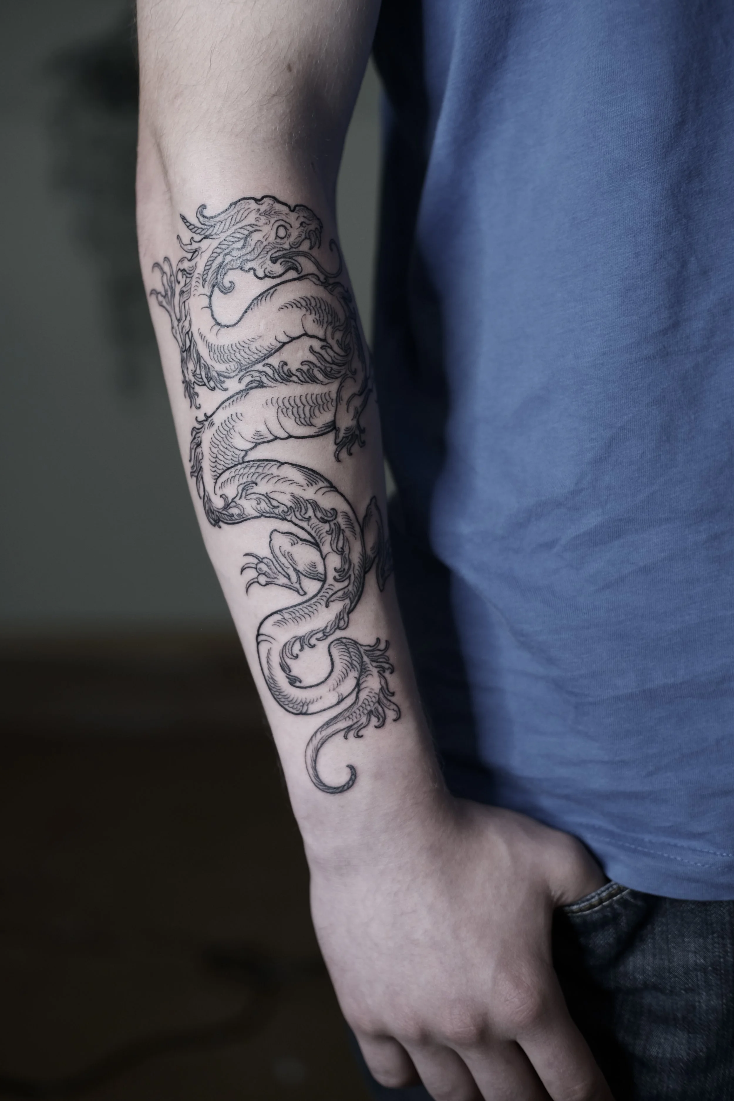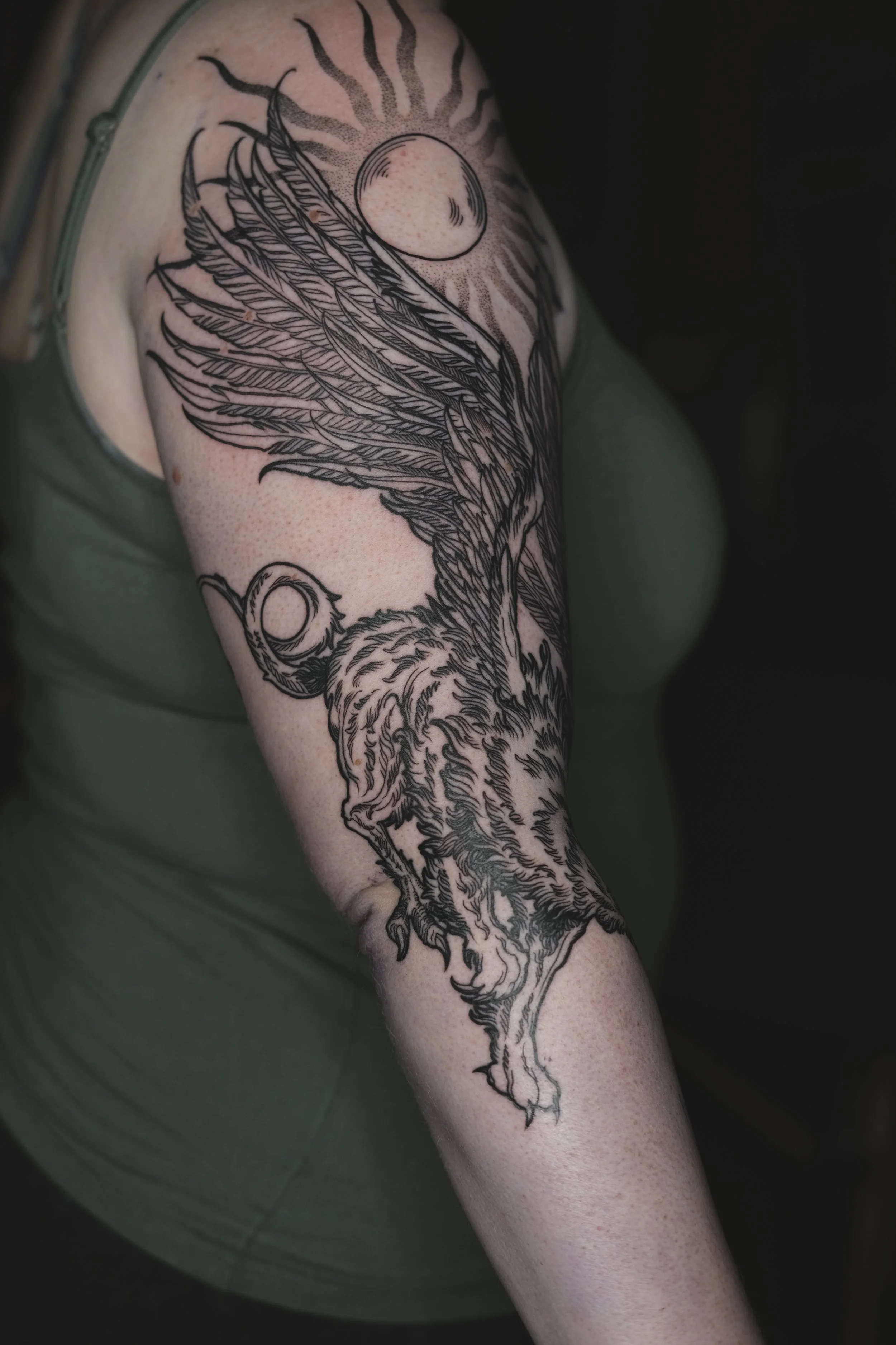 Ich bewege mich gern im Dark Art und engraving Stil, illustrativem Linework sowie Blackwork und kombiniere diese grafischen Darstellungsformen auch gerne miteinander.
